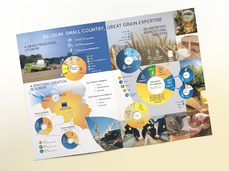 À l’occasion de sa candidature pour accueillir le European Commodity Exchange 2030, la Fédération des grains de Belgique (FEGRA) nous a confié la création d’un dépliant 4 pages, support de présentation de son dossier.