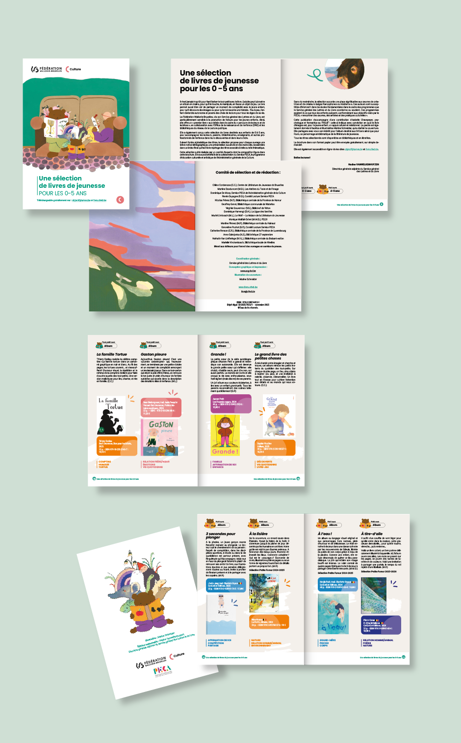 Pour cette brochure de sélection réalisée pour la Fédération Wallonie-Bruxelles, l’enjeu était clair : transformer un catalogue en une expérience visuelle chaleureuse, capable de séduire à la fois les enfants, les parents et les professionnel·le·s de l’éducation.